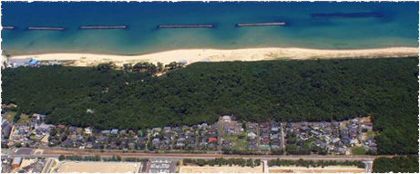 …一連の住宅地の中で「新宮浜」は、与えられた環境としては、ずばぬけていた。玄界灘に面する深く広い防風林としての松林は、100年近い歴史の産物であった。この深い松を生かす、この松を可能な限り残して、この松に合う家をそっと置くようにして建て、住宅地を作ること。それ以外に「新宮浜」の美しい自然を生かす方法は無かった。…家や門、カーポートに至るまで、この残された自然とどう調和するかを慎重に計画し、配置されるように考慮もした。だから私たちは胸をはって言う。「新宮浜を見てください」……と。』